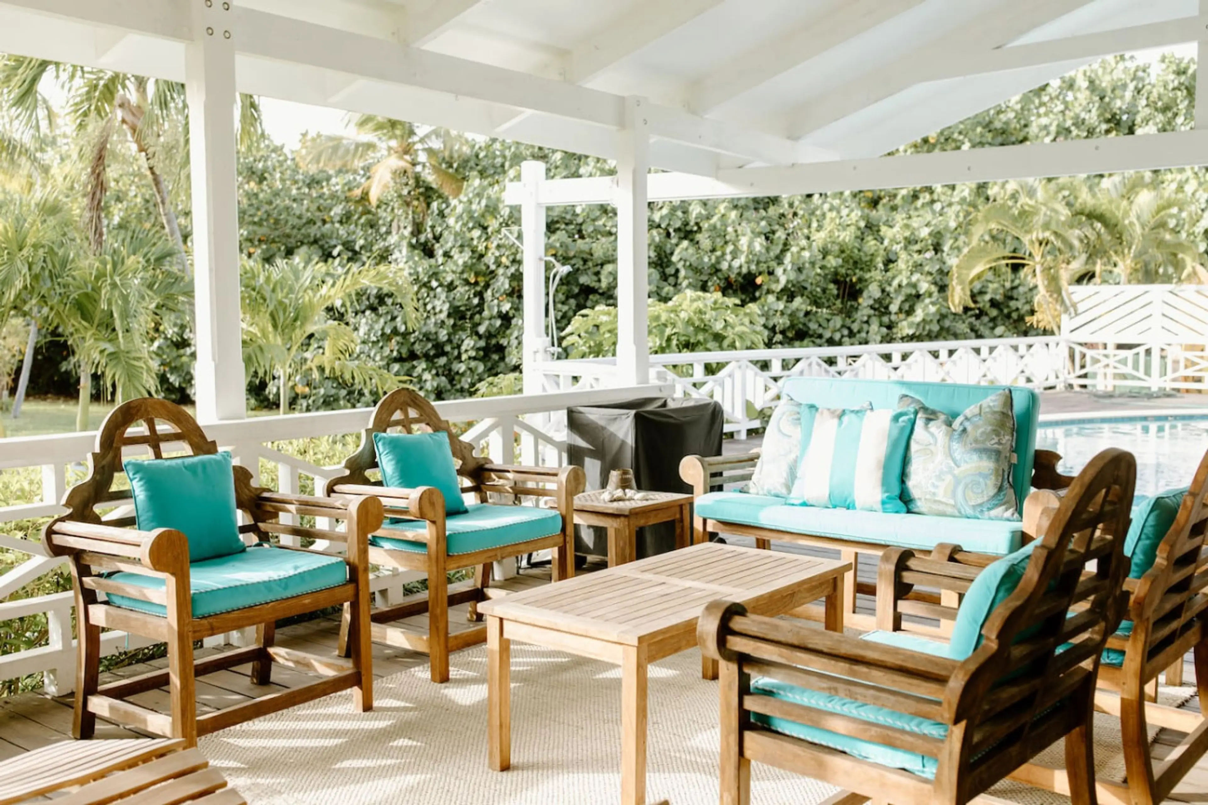 Our 10-day stay at 3 Shoys was fabulous! The five en suite bedrooms situated off a beautiful courtyard offers a perfect layout for couples or friends traveling together, especially our family of 10. A few hiccups upon arrival were corrected immediately after notification. The kids enjoyed the pool, kayaks and playing cornhole, while the adults enjoyed relaxing on the large porch with an ocean view. Many fruit trees and flowering plants are identified on the property. One note - stay clear of the machineel trees along the beach and east property line. Local wildlife included iguanas, deer, mongoose dem and very large frangipani caterpillars. We would rent this house again. BTW, the house has 5 bathrooms and 2 half baths.